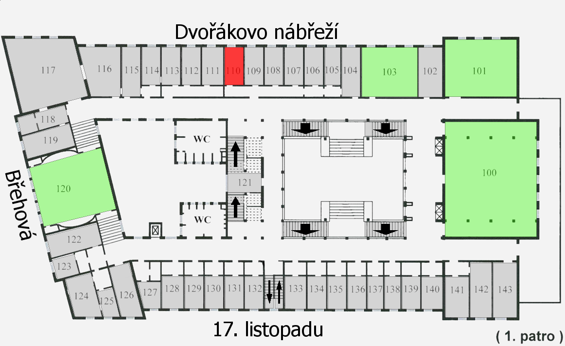 s šipkou naznačující směr je vyznačeno schodiště