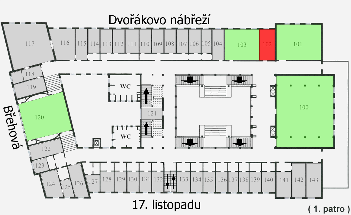 s šipkou naznačující směr je vyznačeno schodiště