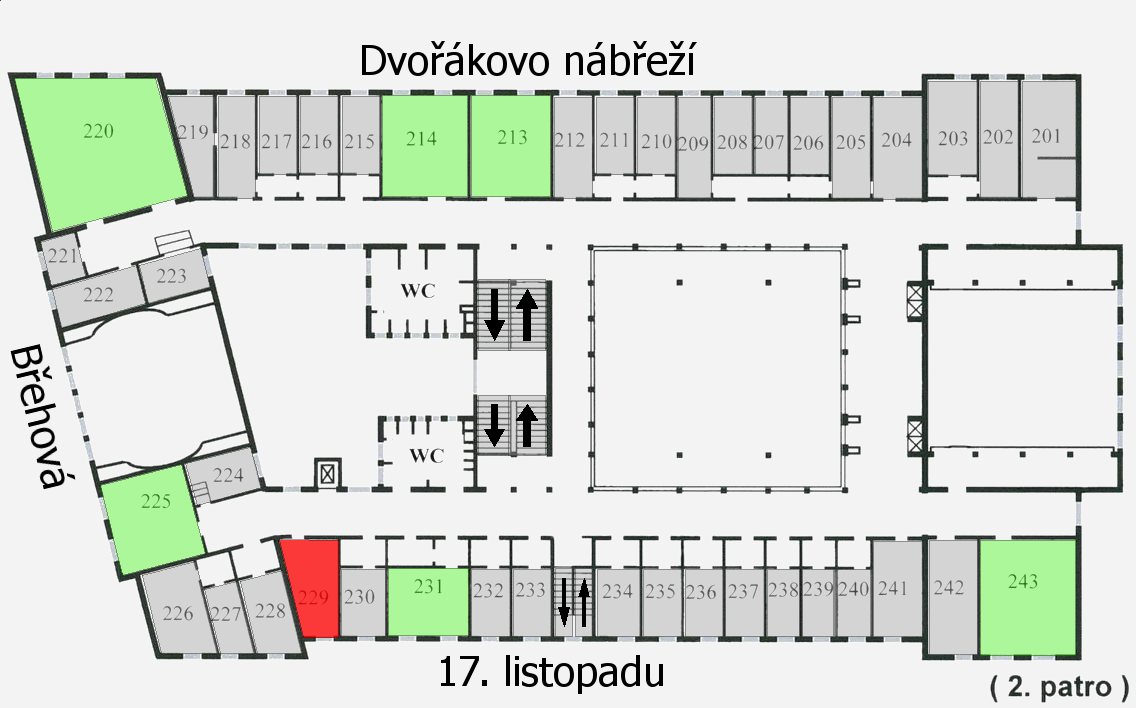 s šipkou naznačující směr je vyznačeno schodiště