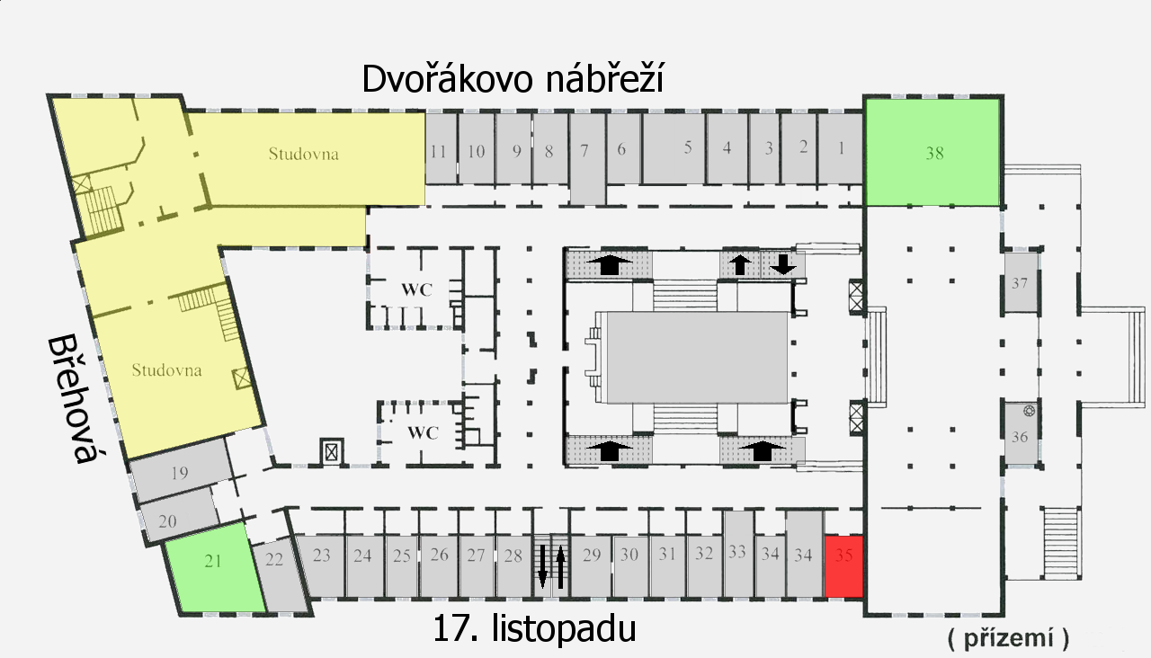 s šipkou naznačující směr je vyznačeno schodiště