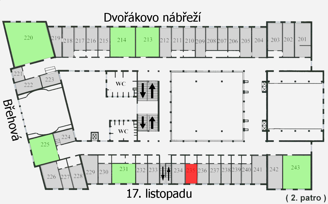 s šipkou naznačující směr je vyznačeno schodiště